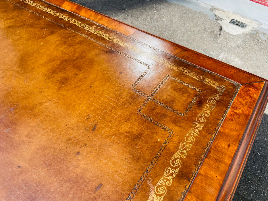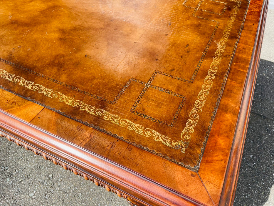 レザーには何かを置いていたと思われる格子状の跡とダメージがありますが、使い込まれた革質と木の雰囲気と相まって絶妙な色気を感じます。