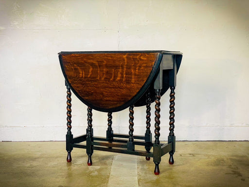 素晴らしい風合いのツイストレッグゲートレッグテーブル。片方だけ開いて使用したり、折りたたんで使用したりと、使い方は様々。英国アンティークの代表的なアイテムです。ゲートレッグテーブルc167情報サイズ:D76W36拡張時104.5H72cm原産国:イギリス年代: 1930年素材: オーク配送区分...