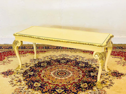 くすんだホワイトにゴールドのペイント。デザインのベースはクイーンアン様式。天板に小傷は多く見受けられますがシャビーな質感と相まって雰囲気良く使えそうです。コーヒーテーブルd35情報サイズ:D45W106.5H45.5cm原産国:イギリス年代:1960年頃 素材:不明配送区分:Eコンディション:...
