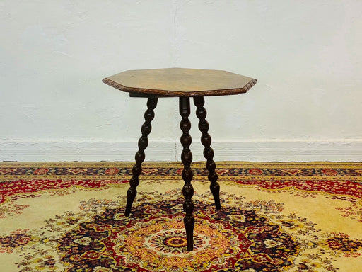 イギリスよりオクタゴン(八角形)のサイドテーブル。天板エッジのカーヴィングとボビンターンを基調とした3本脚が特徴的。天板に若干の反りは見られますが不便を感じる程ではないと思います。「ありそうでない」アンティークならではの意匠と雰囲気です。オクタゴンサイドテーブルd283情報サイズ:D54.5W...