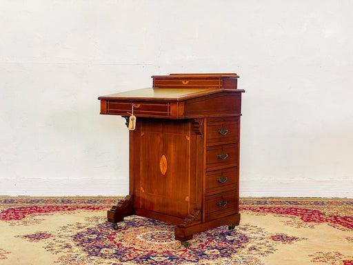 傾斜した開閉式の天板と、側面の引き出しが特徴の小ぶりなデスク。両側面にドロワーがついているようなデザインですが左側面はダミーです。※最上部ポケットの鍵は使用不可です。ダヴェンポートとは18世紀後半、当時の英国海軍大佐の名前。氏が船で使える小型のライティングデスクをとオーダーしたことから始まった...