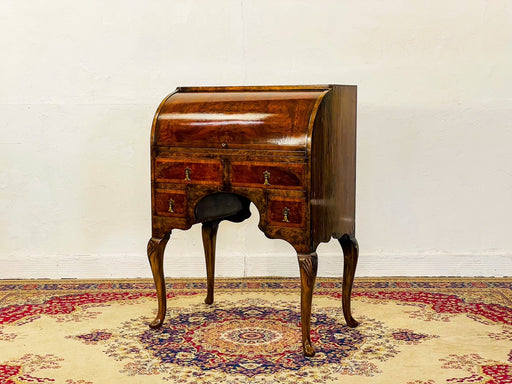 スライド式で開閉するビューロー。ウォールナットのバール杢を使用した美しい柄が魅力のお品です。内装には筆置きなどが内蔵されていてディスプレイにも一役買ってくれそうです。ロールトップビューローe8情報サイズ :D47W75.5H99cm原産国 :イギリス推定年代:1910年頃推定素材:ウォールナッ...