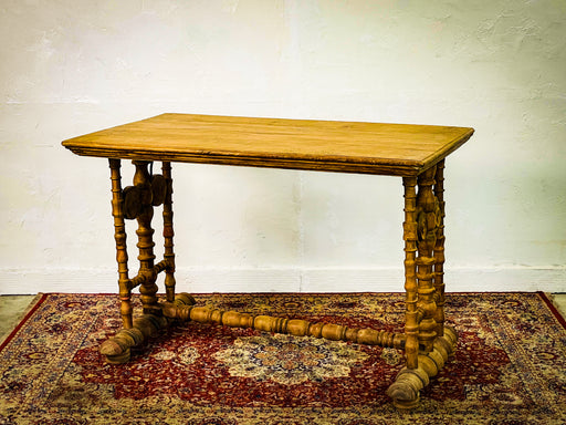 インドよりハイテーブルです。脚の装飾が目を引くチーク材のテーブル。高さは89.5cmと一般的なキッチンカウンターくらいでしょうか。カウンターチェアと合わせたりスタンディングテーブルとしてご使用くださいませ。非常に流通量の少ないハイテーブル。自宅の憩いのスペース、カフェやショップのインテリアとし...